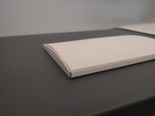 To start off the session, we were shown the Perfect Binding Machine. This is used to grip pages of a book together down the spine with what is essentially double-sided tape, before the cover can be placed over the top of the pages. We didn't need to the use the machine in this session but instead, we used a roll of double-sided tape to stick a mini paper cover onto s small booklet.